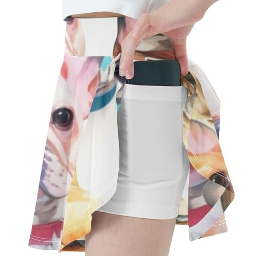 Watercolor French Bulldog Faces Athletic Shorts for Girls Skorts Skirts with Shorts Floral Little Girl 3t 7