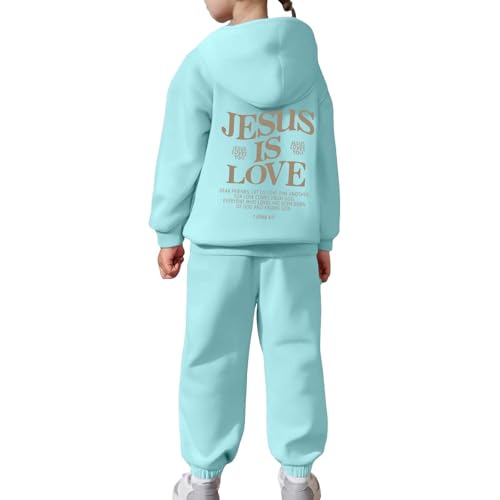 Jesus Sweatsuit 2 Piece for Kids Boys Girls Fall Clothes Christian Hoodies Long Sleeve Pullovers and Jogging Sweatpants 2
