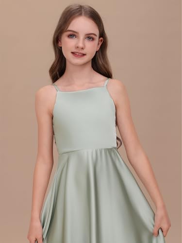 Satin Junior Bridesmaid Dress for Wedding A-Line Straps Bow Knot Flower Girl Dress Sleeveless Long Formal Events Gown 5