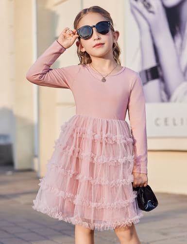 Arshiner Toddler Tutu Dress Girls Long Sleeve Fall Winter Ruffle Tiered Holiday Party Tulle Dresses 6