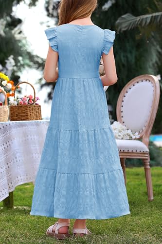 MITILLY Girls Summer Maxi Dress Cute Ruffle Short Sleeve A Line Flowy Casual Party Dresses with Pockets 6-13 Years 4