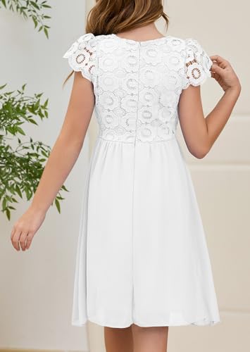 • Design: Simple & Elegant Style, Vintage Lace Bodice and Chiffon Skirt, Solid Color, Round Neck, Crochet Lace Short Sleeve, High Waist, Pleated, A-line, Concealed Zipper At Back, Knee Length