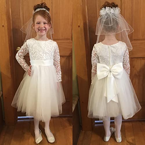 HOT ! Flower Girl Dress Long Sleeves Lace Top Tulle Skirt Girls Lace Party Dresses