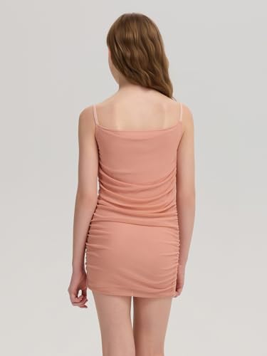 • Stylish Ruched Bodycon Dress: This stylish girls bodycon dress features elegant spaghetti straps neckline, ruching and a delicate mesh overlay, perfect as a graduation dress for girls, junior bridesmaid dresses, or teen formal dress. The flattering pencil silhouette makes tight dresses for teens ideal for girls' special occasion dresses like proms and pageants