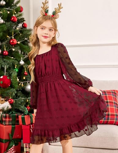 Arshiner Girls Dresses Long Sleeve Square Neck Swiss Dot Flowy Casual Party Dress 1