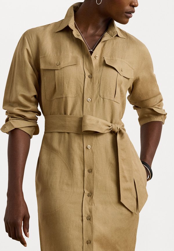 HOT ! Linen Blend Shirtdress - Shirt dress - camel