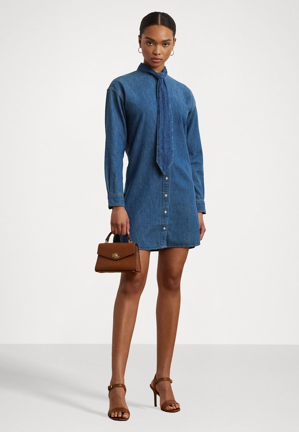 HOT ! DENIM TIE NECK SHIRTDRESS - Denim dress - opal wash