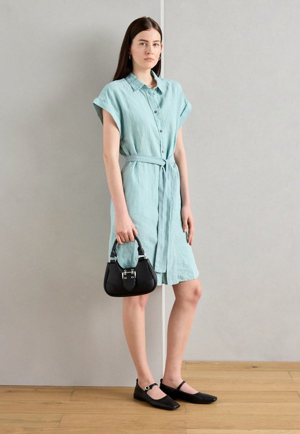 SHIRT DRESS SHORT LENGTH COLLAR BELT AT WAIST - Shirt dress - pure teal 7
