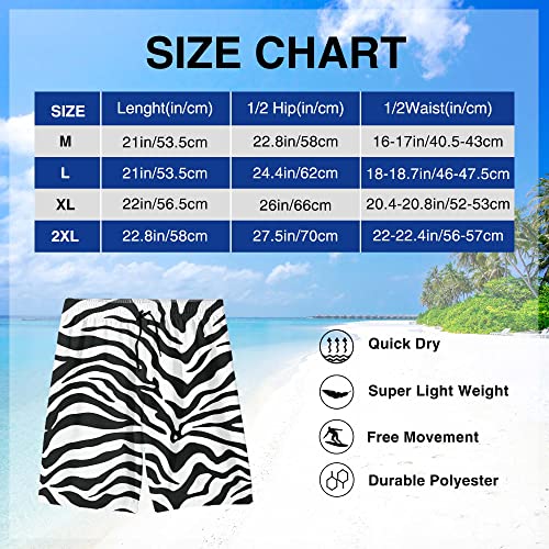 Men's Swim Trunks Zebras Print Quick Dry Beach Shorts with Pockets Swimwear Bathing Suits Long Board Shorts White 6