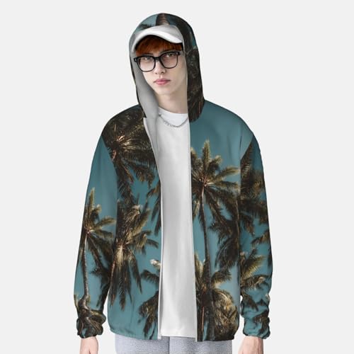 HOT ! Men's UPF 50+ Sun Protection Hoodie Long Sleeve Fishing Shirts Quick Dry Tall Tropical Palm Trees Sun Shirt Jacket