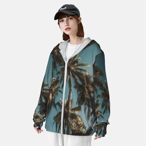 • COOLING FABRIC: Tall Tropical Palm Trees Long sleeve sun shirt are made of moisture-wicking fabric, the mesh panels at two sides enhanced ventilation. Sun jackets has perfect breathable and quickly wick away perspiration, keeping you dry and comfortable every day.