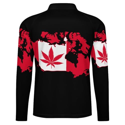 Marijuana Leaf on Canada Map Men's Rash Guard Long Sleeves Quick Dry Fishing Workout Shirts with Zipper 4