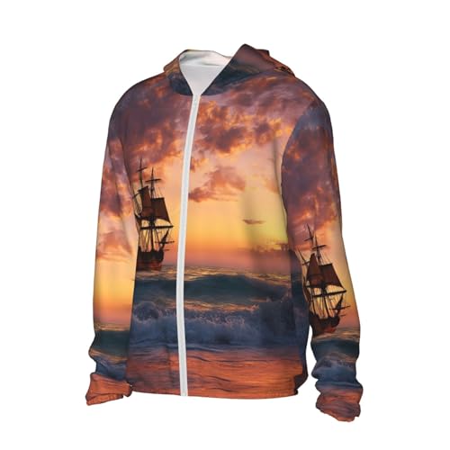 UPF 50+ Sun Protection Hoodie Rash Guard Long Sleeve Sun Shirt sunset pirate ship UV Shirt Full Zip Jacket 7