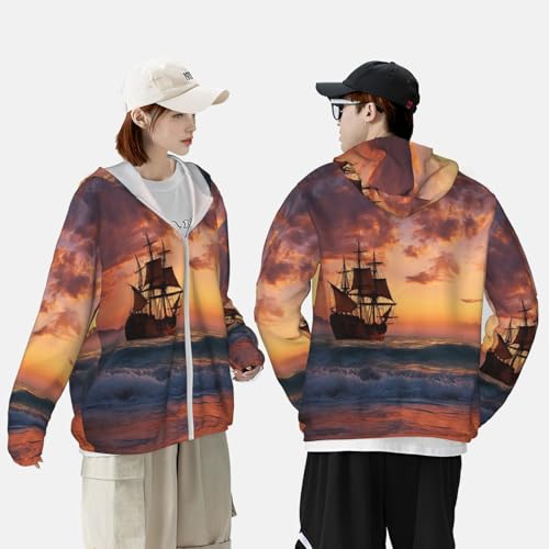 • Sun Protection: These sunset pirate ship mens long sleeve fishing shirts with a hoodie can protect your neck from sun. UPF 50+ sunscreen fabric, ideal for outdoor activities, such as running, hiking, swimming, fishing and training