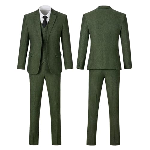 More information about Retro 3 Piece Suit Tweed Herringbone Men's Suits Slim Fit Groom Tuxedos Set Prom Brown Grey Jacket Blazer Vest Pants