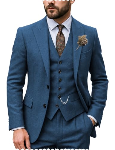 More information about Men's Suits Slim Fit 3 Pieces Prom Tuxedos Tweed Herringbone Jacket+Waistcoat+Trousers Wedding Grooms
