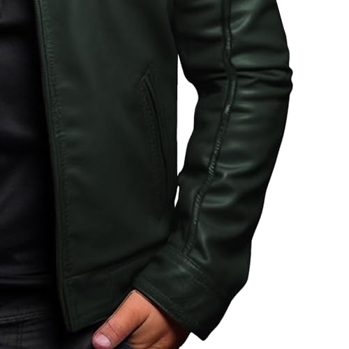 • MULTI POCKETS:This leather jacket has chest pockets to safely store and keep essentials like a phone and identification documents near at hand, 2 interior pockets that provide storage for multiple items like a wallet, phone, or cards, and 2 hand pockets to warm up cold hands.