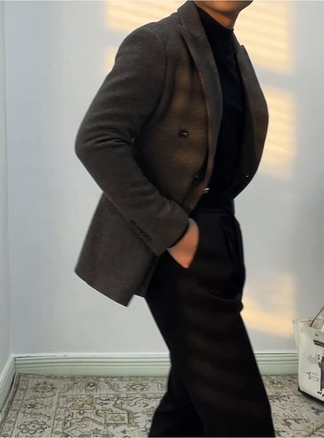 • Classic Double-Breasted Design – This sophisticated men's overcoat features a classic double-breasted front with button closure, offering a sharp and polished look suitable for both formal and casual occasions.