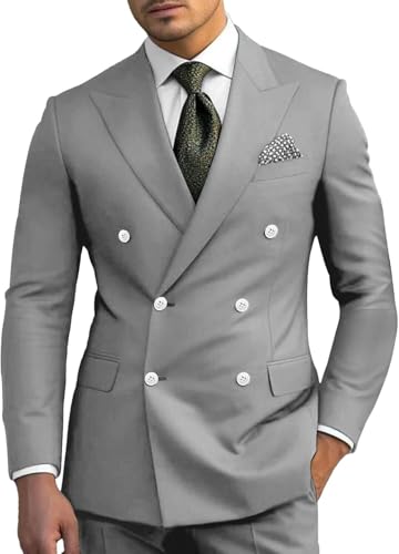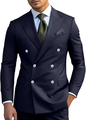 • Fabric type: Double Breasted Men Solid Suits for Groom Slim Fit Peak Lapel Business Wedding 2 Piece Sets Blazer Jacket Pants Formal Prom Dinner Tuxedo