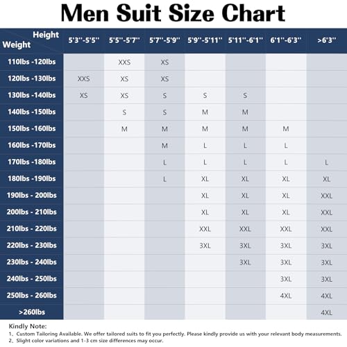 • Notes:Please allow 1-3cm differs due to manual measurement.Please kindly note that the real color of the suit may be a little different from the pictures shown on the website due to camera quality and monitor settings.