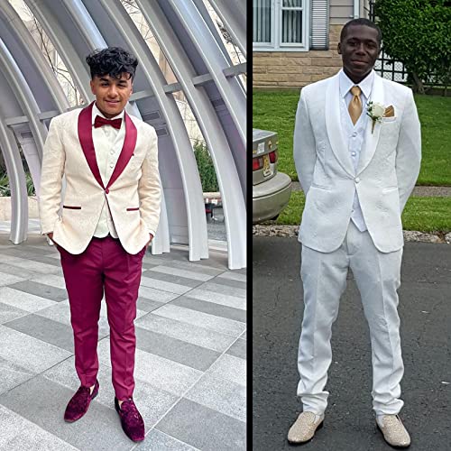 • 【Feature】 Unique paisley jacquard pattern design make this suit perfect for groom's wedding dress. Available in a variety of colors, you can choose a pure white set or choose ivory with other gorgeous colors. The white/ ivory coat is elegant and pure, matching the bride's white wedding dress perfectly.