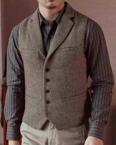 More information about VENNYNG Men's Herringbone Notch Lapel Vest with 2 Waist and 2 Chest Pockets Slim Fit Formal Waistcoat for Weddings Casual