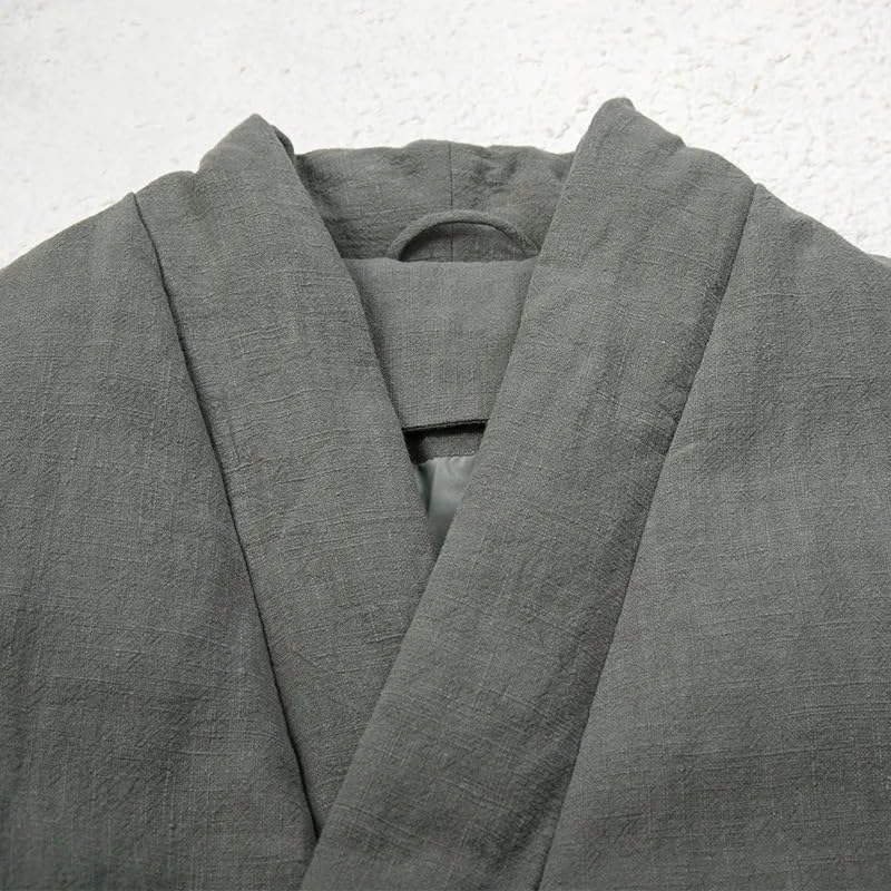 Tang Suit Cotton-Padded Jacket Men Chinese Style Thicken Coat Winter Vintage Solid Color Linen Outerwear 4