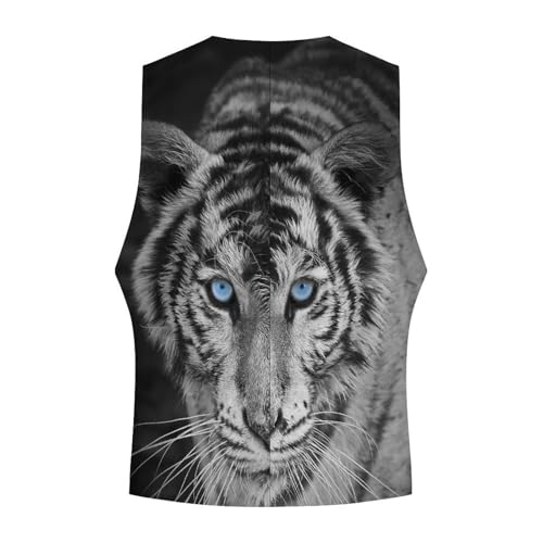 White Tiger with Blue Eyes Men's Suit Vest Slim Fit V-Ncek Waistcoat Business Casual Vest 4