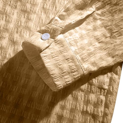 Cambkatl Men's Long Sleeve Plaid Linen Hoodies - 2025 Fall Loose Button Down Casual Lightweight Gingham Beach Shirts 7