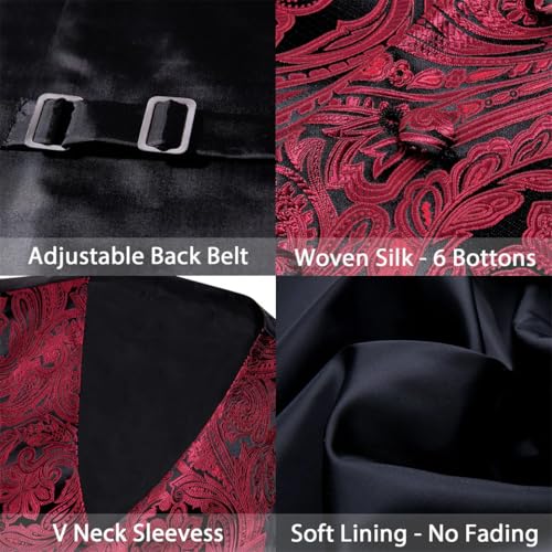 Men's Formal Waistcoat and Tie Set with Pocket Square and Cufflinks for Wedding Suit or Tuxedo 6