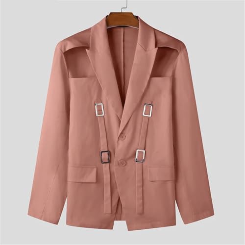 Men American Style Hollow Button Blazer Casual Streetwear Long Sleeve Suit Coat 6