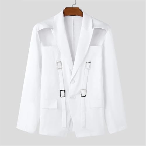 Men American Style Hollow Button Blazer Casual Streetwear Long Sleeve Suit Coat 1