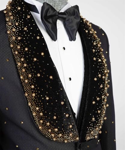 HOT ! Mens 3 Piece Suit Slim Fit Tuxedo Jacket Blazer Pants with Shiny Rhinestone Decoration for Prom,Party,Wedding