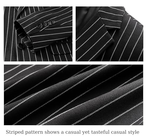• Mens Stripe Suit: Classic striped pattern, this single-breasted striped blazer has two-button down, with adjustable waist V-Ncek waistcoat and flat front dress pants make you stand out at the party