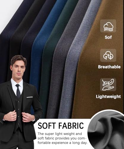Men's 2 Piece Slim Fit Suit Set Two Button Blazer Jacket Vest Pants Tuxedo Set for Wedding and Business 3