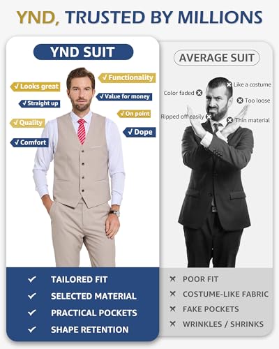 YND Men's 2-Piece Suit, Vest Pants Set for Men, Classic Waistcoat with Tie for Business, Wedding, Prom, Homecoming 5