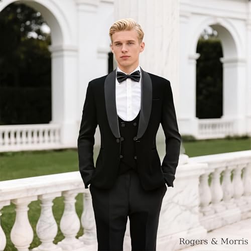 Rogers & Morris Velvet Tuxedo Suit for Men Solid Shawl Lapel 3 Piece Set Regular Fit Jacket Vest Pants Set 3