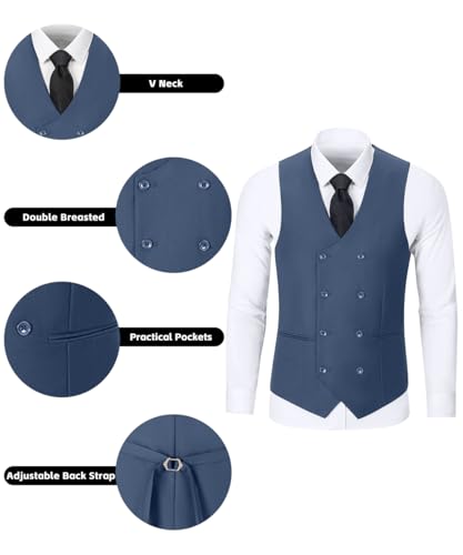 3Piece Suit for Men Wedding Suit Business Suits Set Double Breasted Solid Jacket Vest Pants Tuxedo Grey Blue 2XL 5