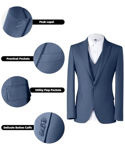• Men's 3-piece Suit for Formal: one button slim-fit jacket + double breasted vest + modern flat-front pants. Suitable for Wedding,Party, Halloween, Christmas ,Prom ,Cocktail , Business ,Any Festive, Work Formal Occasion, daily Casual