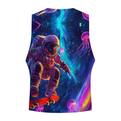 Astronaut on Skateboard Jellyfish Trendy Vest Suit for Men V Neck Formal Dress Waistcoat Vests Business Slim Fit 1