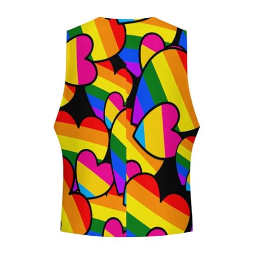 LGBT Pansexual Double Love Hearts Trendy Vest Suit for Men V Neck Formal Dress Waistcoat Vests Business Slim Fit 1