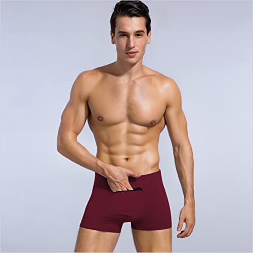 HOT ! 2 Packs Men's Boxer Briefs Secret Hidden Pocket, Pickpocket Proof Travel Secret Pocket Underwear, Pocket Panties. (Burgundy)