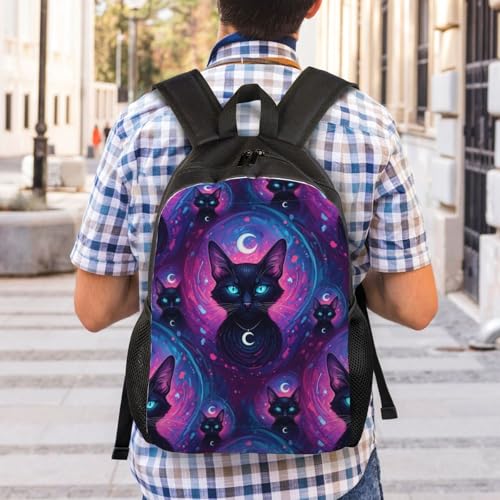 Stylish Travel Hiking Rucksack Backpack for College and Outdoor Adventures, Perfect for Men and Women (Gothic Moon Magical Black Cat) 1