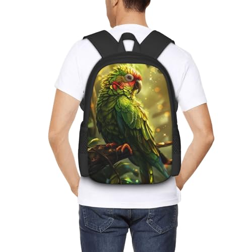 Commuter Unisex Green Parrot Branch Glow Backpack Spacious Compartments for Work Essentials Casual Outings & Trips 17 Inch 7