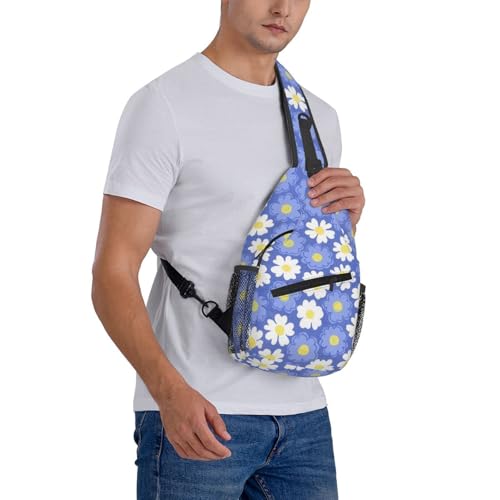 HOT ! Black colorful Daisy Sunflower White Sling Backpack Unisex Crossbody Chest Bag Shoulder Chest Bag For Women Men Hiking Travel