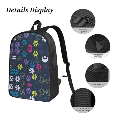• Perfectly Sized: Cute dog paw print 3PCS Backpack for Men Women brings thoughtful design with a 12.6x5.1x17 in backpack, 7.9x3.5x4.8 in insulated bag, and 8.7x1.8x4.3 in pencil pouch to keep things organized and tidy.