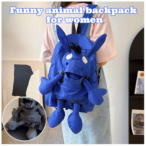 • Rock 'n' Roll Donkey Design: Unique backpack featuring a playful donkey with a cartoon charm pendant, perfect for adding fun to any outfit.