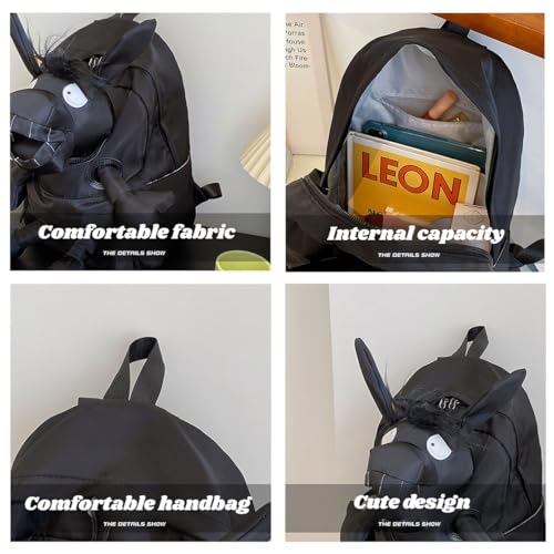 HOT ! Funny Animal Backpack with Cartoon Charm Pendant for Women Rock ‘n’ Roll Donkey Large Capacity Pink Bag for Travel (Black)