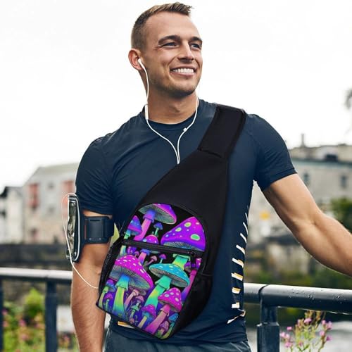 Men & Women Sling Bag Backpack Satchel Bookbags Travel Rucksack Daypack - Anti-Theft Multipurpose Neon Mushroom Carry On Bag, Handy Crossbody Daypacks 5