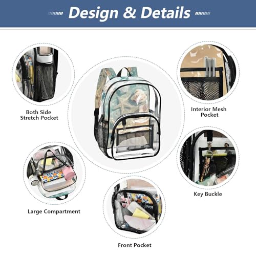Summer Beach Starfish and Seashell Clear Backpack - Stadium Approved Large 15.7-inch Waterproof Transparent Bag for Sports, Concerts, Work, Travel#567 7